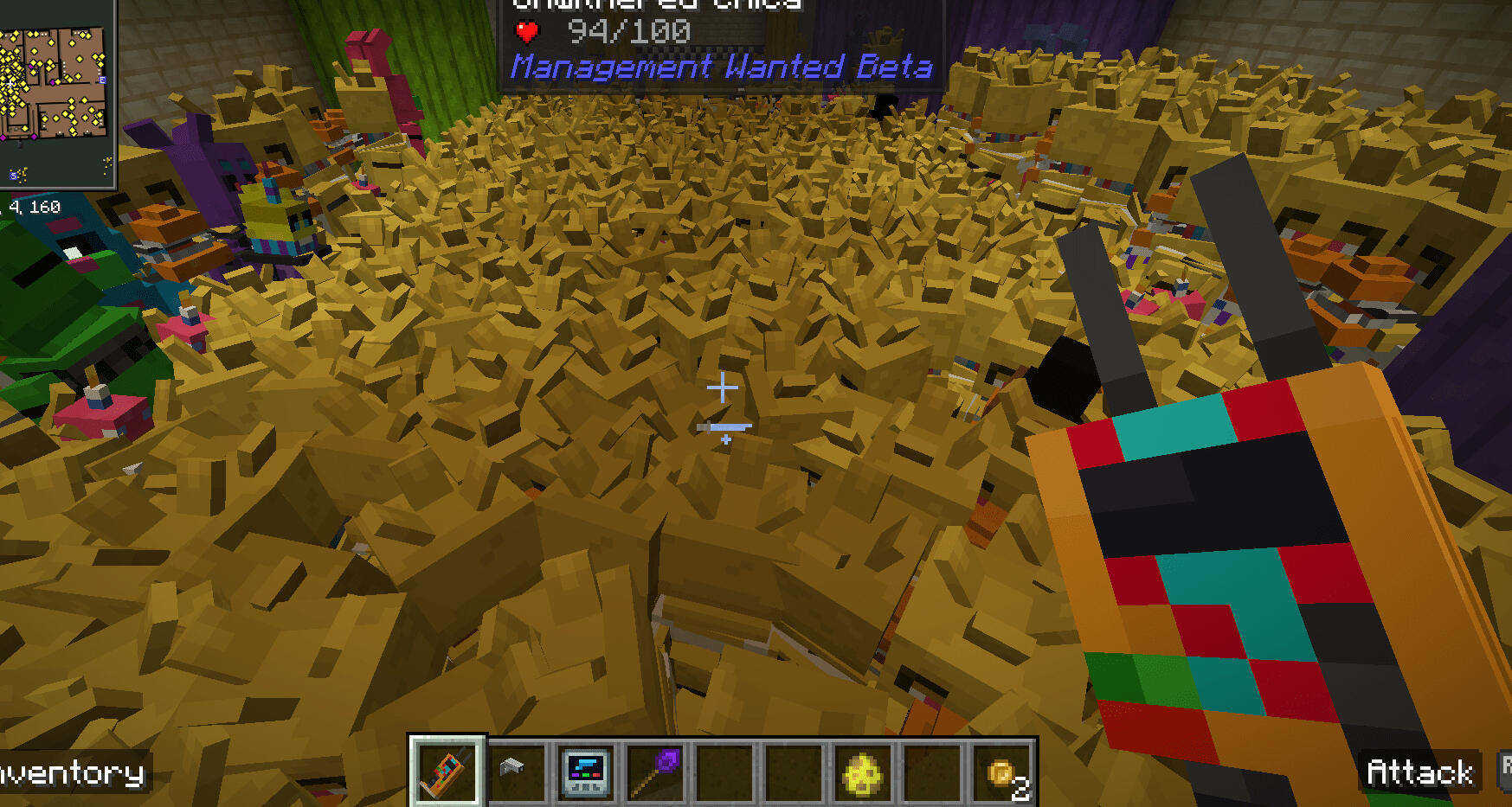 A mod with 150+ animatronics that merges the pizzeria simulator mechanics of Freddy Fazbear's Pizzeria Simulator (FFPS) with Minecraft.